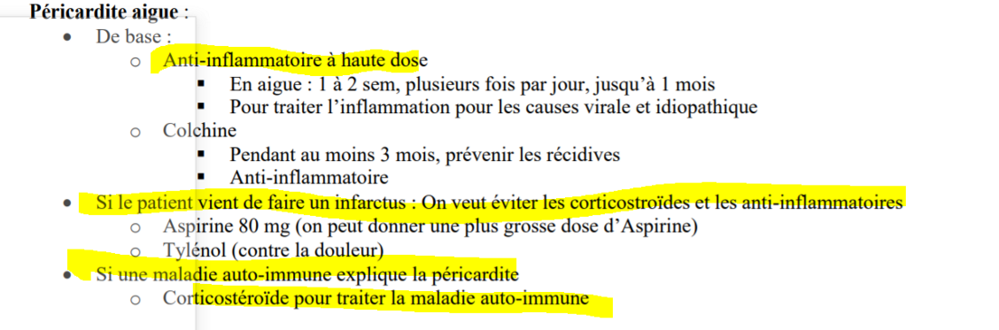 quel est le traitement de base de la péricardite ?