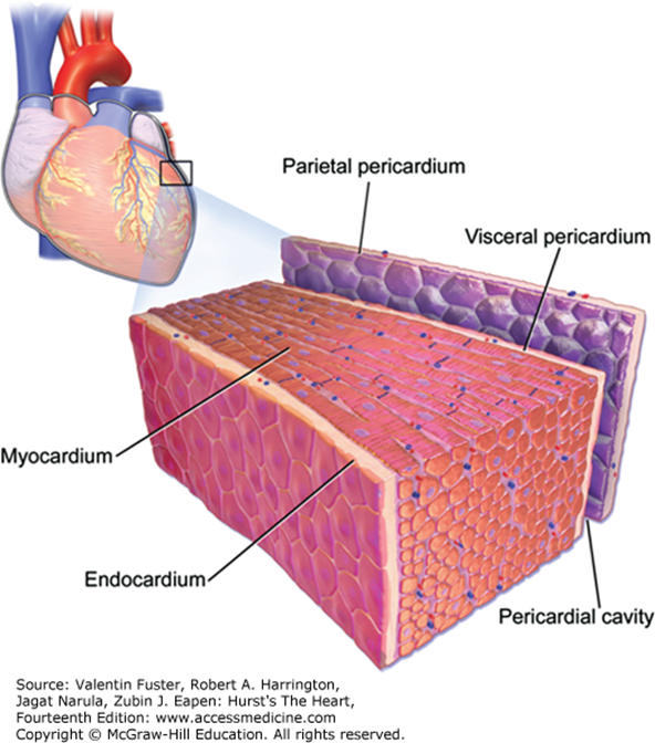 (a) Fibrous pericardium: Tough, inelastic, and outer connective tissue.