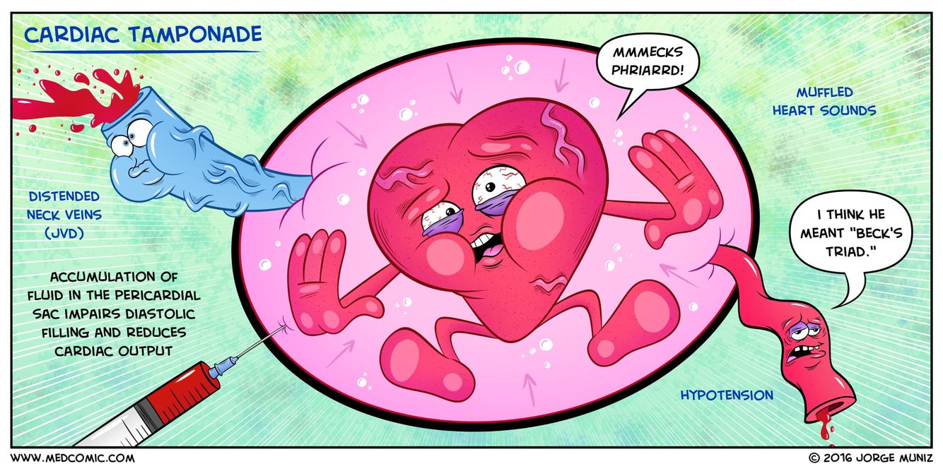 pericardial effusion, cardiac tamponade, cardiac arrhythmias