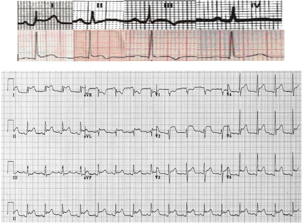 En resumen, con el tiempo (1-3 días) el segmento ST se normaliza y disminuye la amplitud de la onda T, que termina por hacerse negativa a los 3-4 meses. La secuencia de evolución típica del ECG en la pericarditis es (EXAMEN):