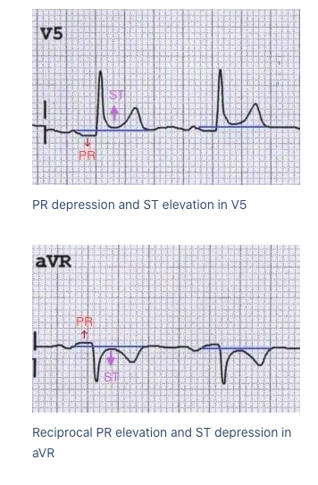 ECG findings in acute pericarditis.