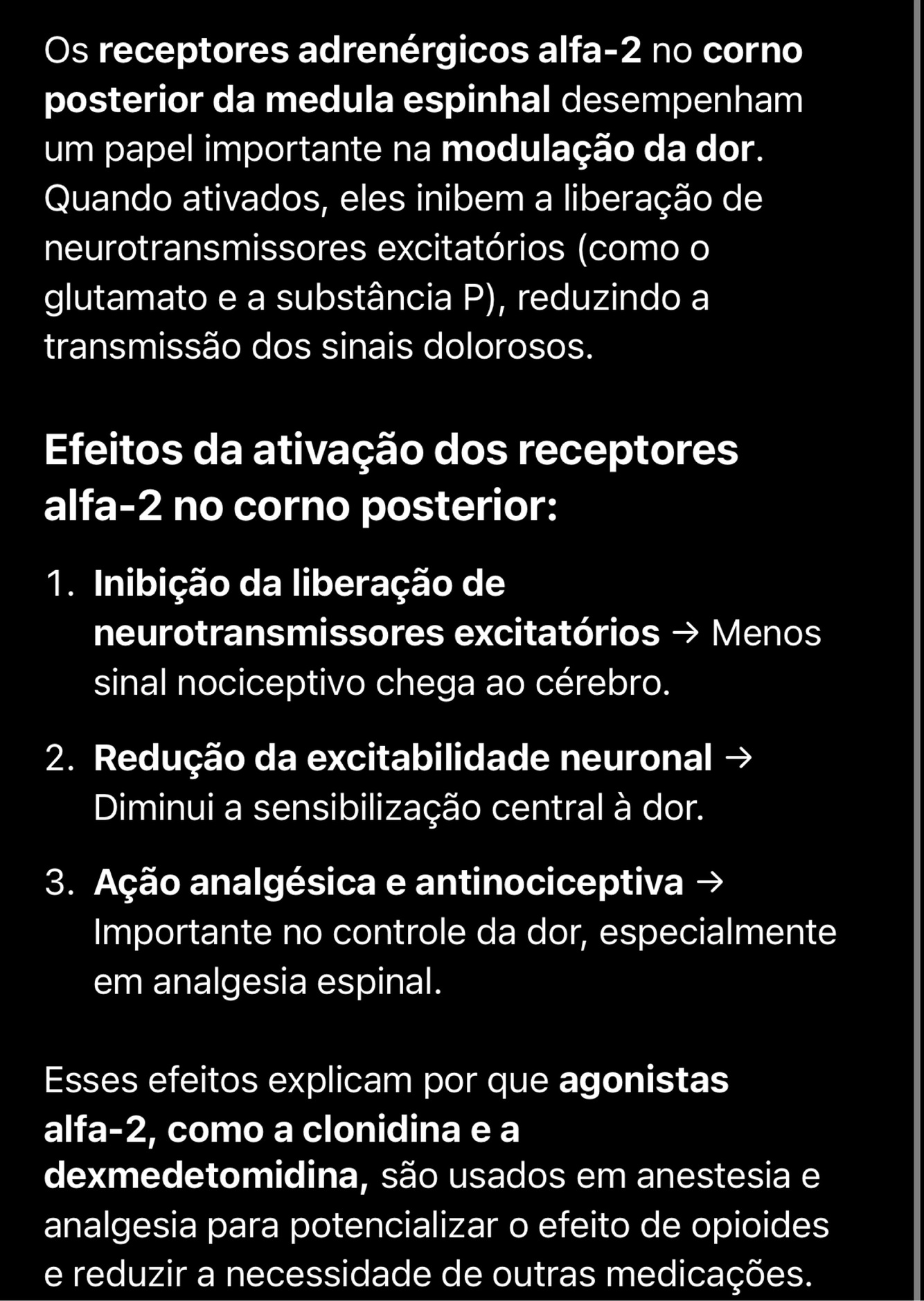 Efeitos alfa 2 no corno posterior