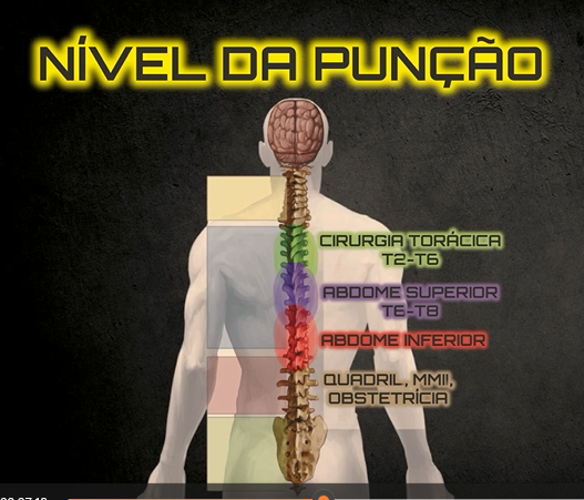 -AO procedimento: Altura do bloqueio; região cervical alta: propagação caudal, Torácica média: propagação igual cranial e caudal, torácica baixa: propagação principalmente cranial, epidural lombar: propagação é mais cranial do que caudal.