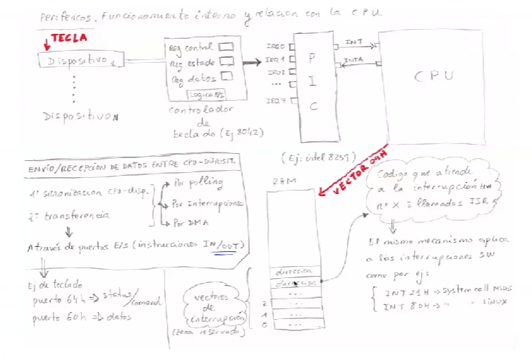 Indicar el proceso de funcionamiento de un periferico a nivel de arquitectura HW