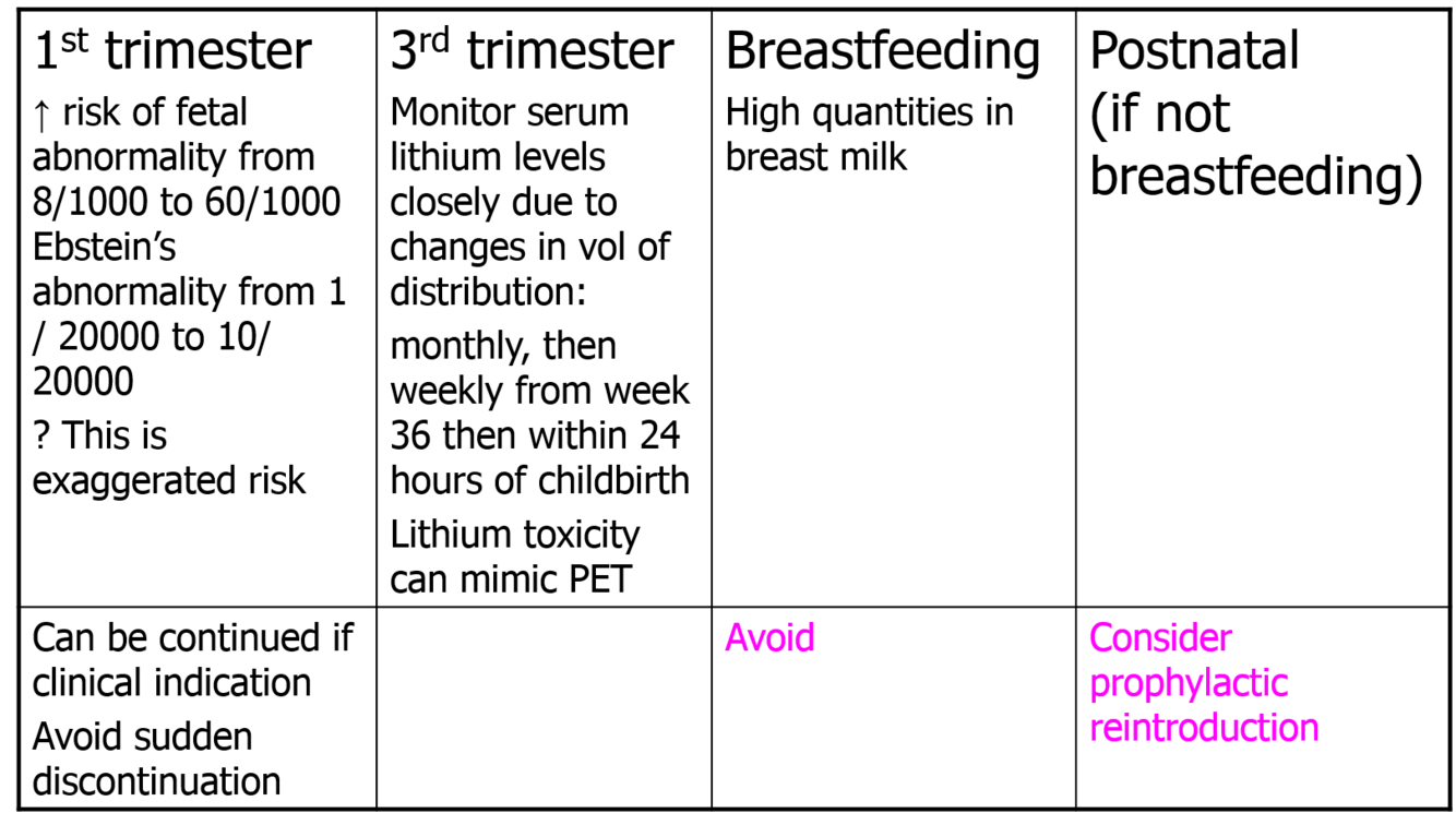 What are the recommendations for lithium useage in planning a pregnancy and in someone who is pregnant ?