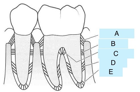 Which type of periodontal ligament fibre is E?