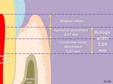Biological width is defined as the soft tissue attached to the tooth coronal to the crest of the alveolar bone, encompassing the ____ and ____