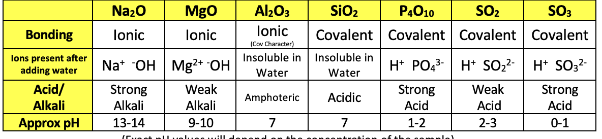 What is the relationship between the bonding and acid/base properties of the period 3 oxides?