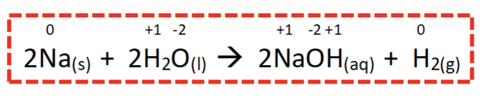 Na (s) + H2O (l) —>