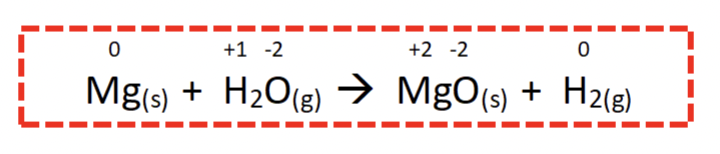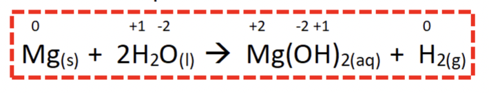 Mg (s) + H2O (l) —>