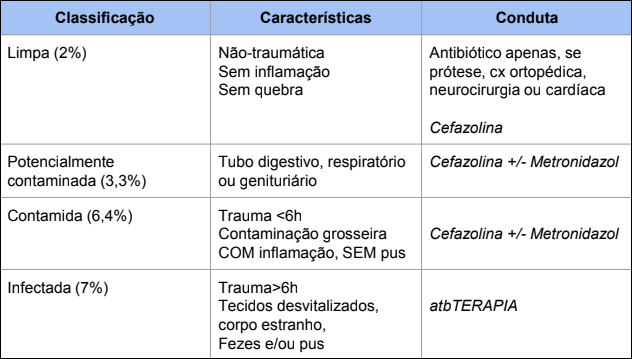 Classificação e CD em Feridas orperatórias (risco de infecção)