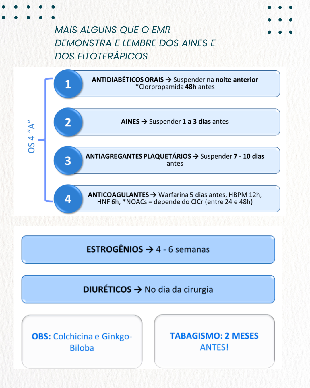Recomenda-se a suspensão do uso de diuréticos com quanto tempo antes da cirurgia?