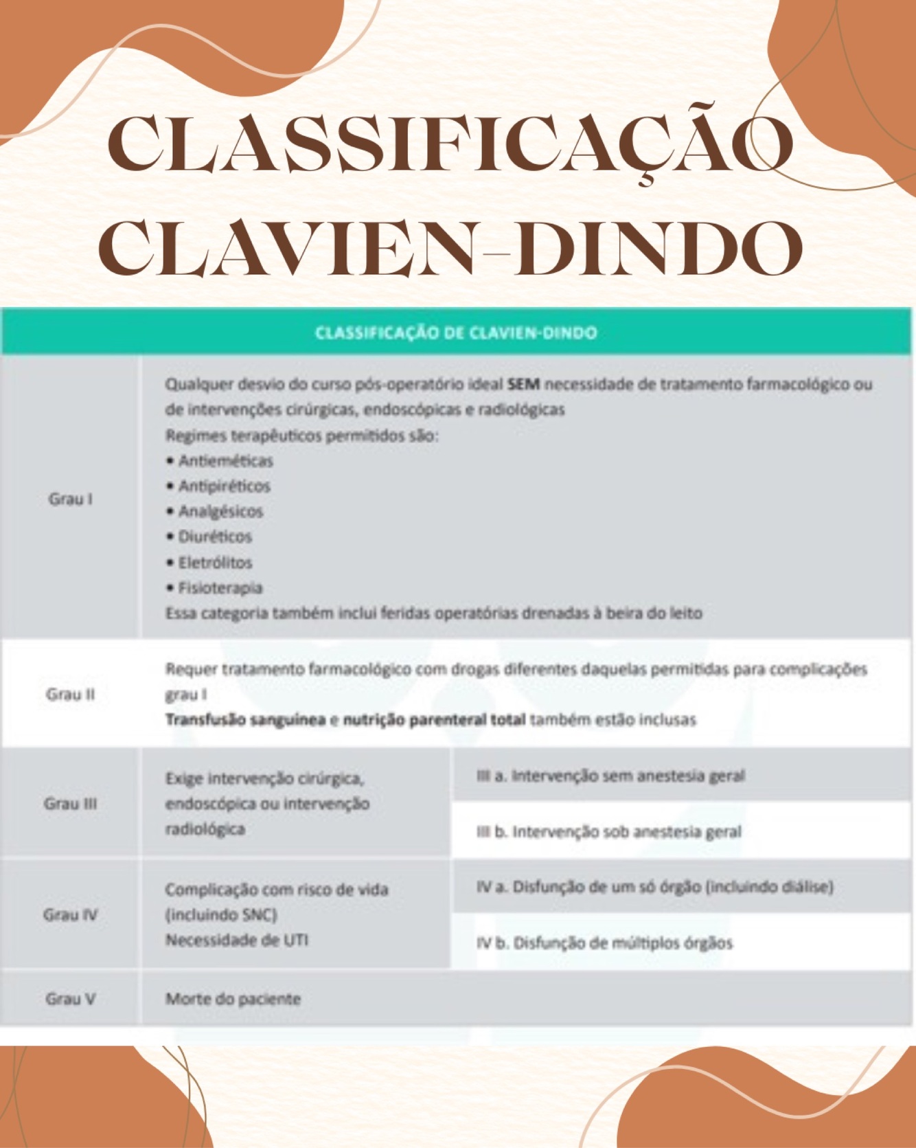 A morte corresponde a que grau da classificação das complicações pós-operatórias de Clavien-Dindo?