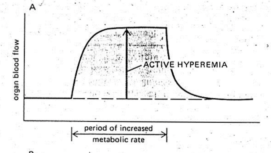 During a period of increased metabolic rate (using a muscle), blood flow will increase to muscle being used during the period of metabolic activity and will stop when activity is stopped