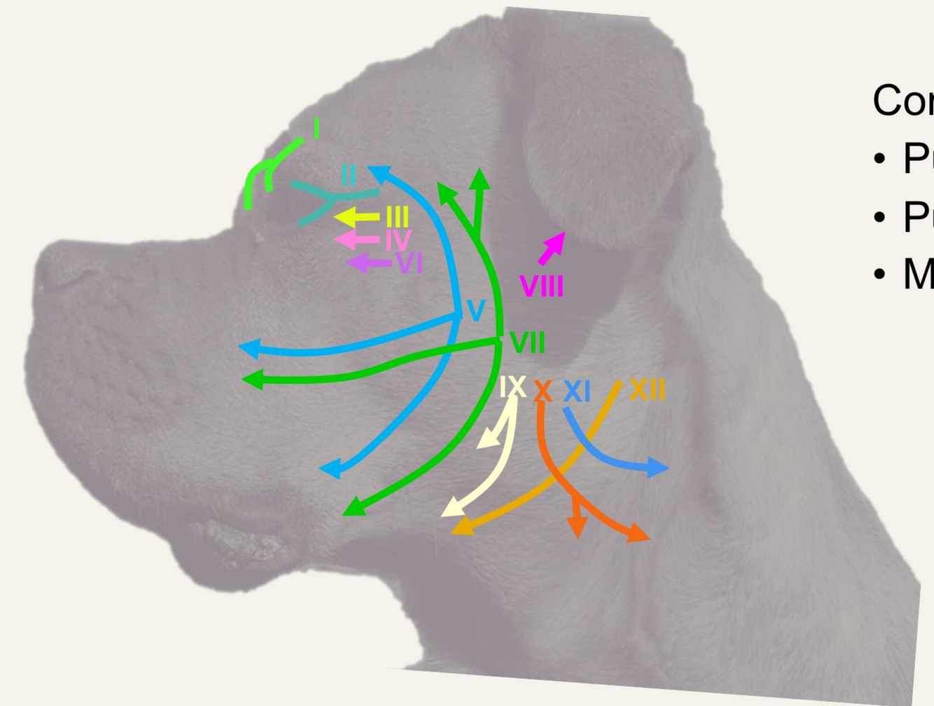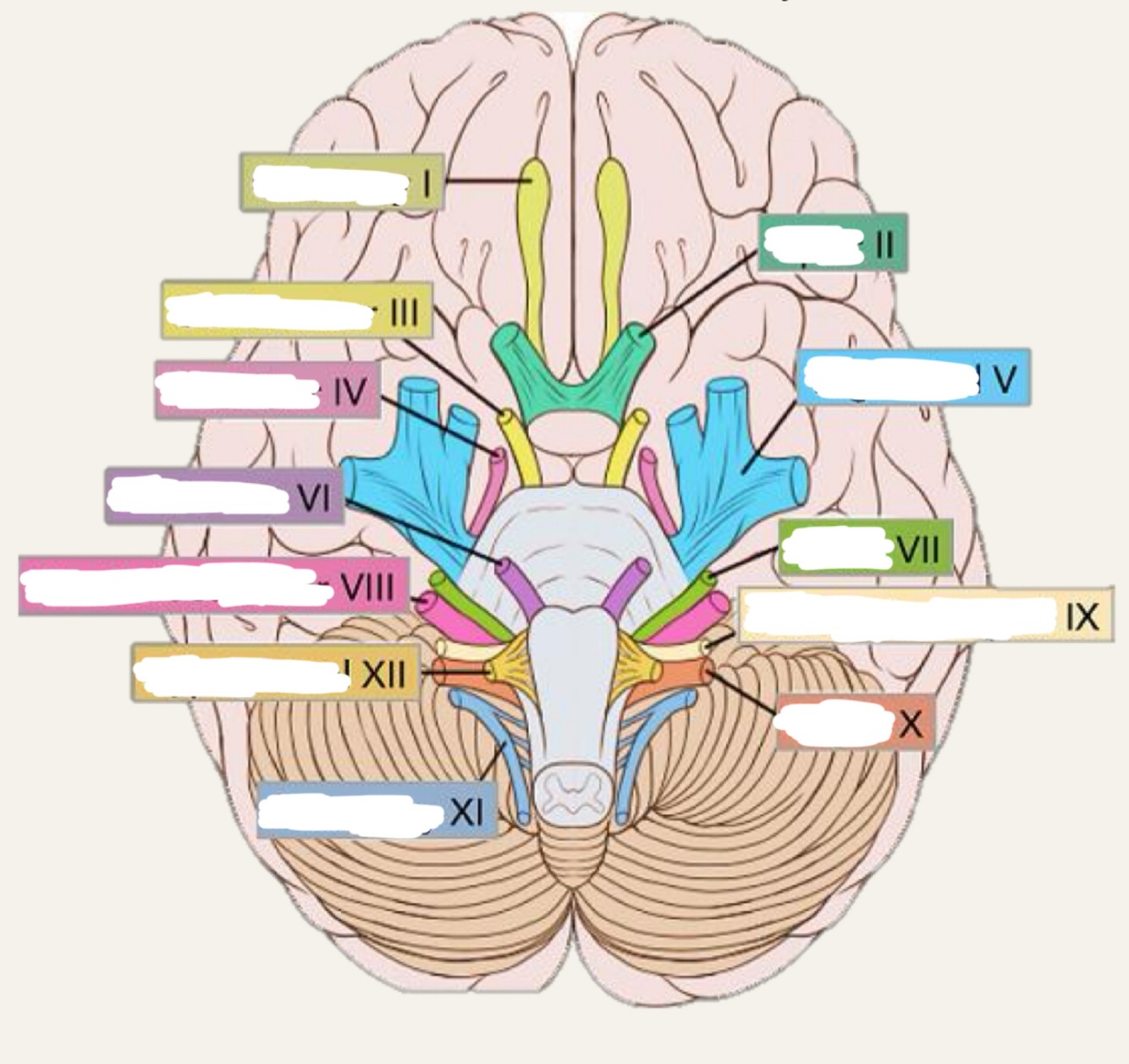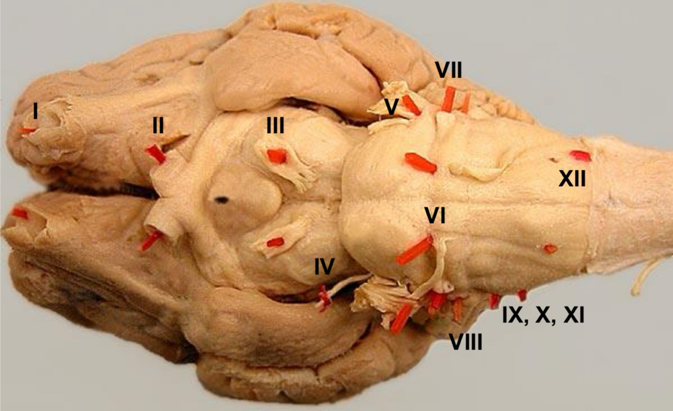 Cranial nerve distribution - name cranial nerves
