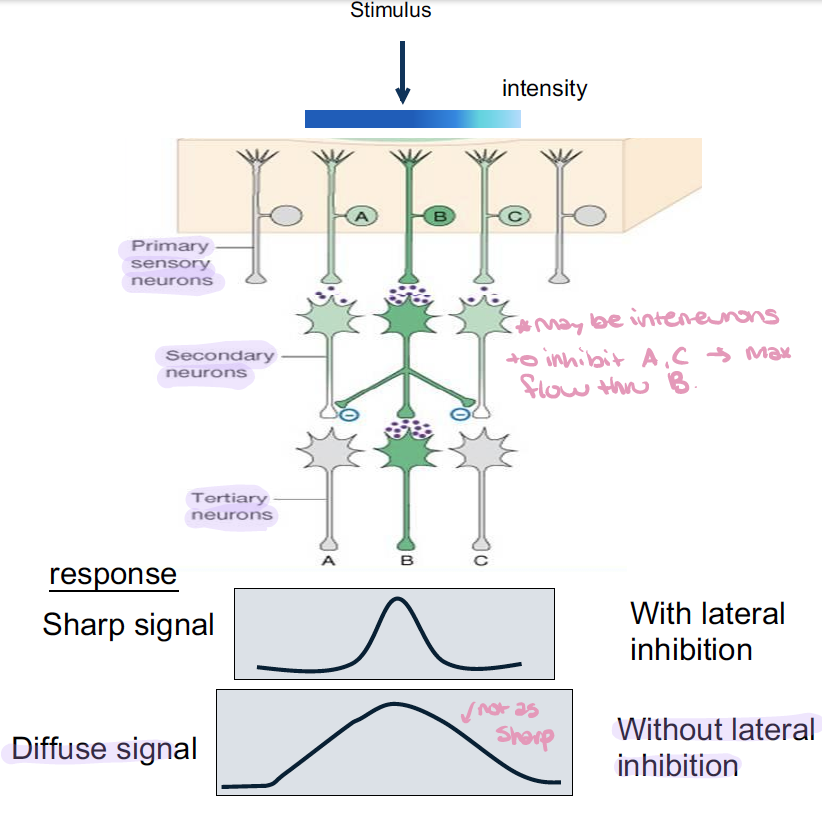 stimuli passed by sensory afferent –> overlap of fields can assist in localization of stimuli