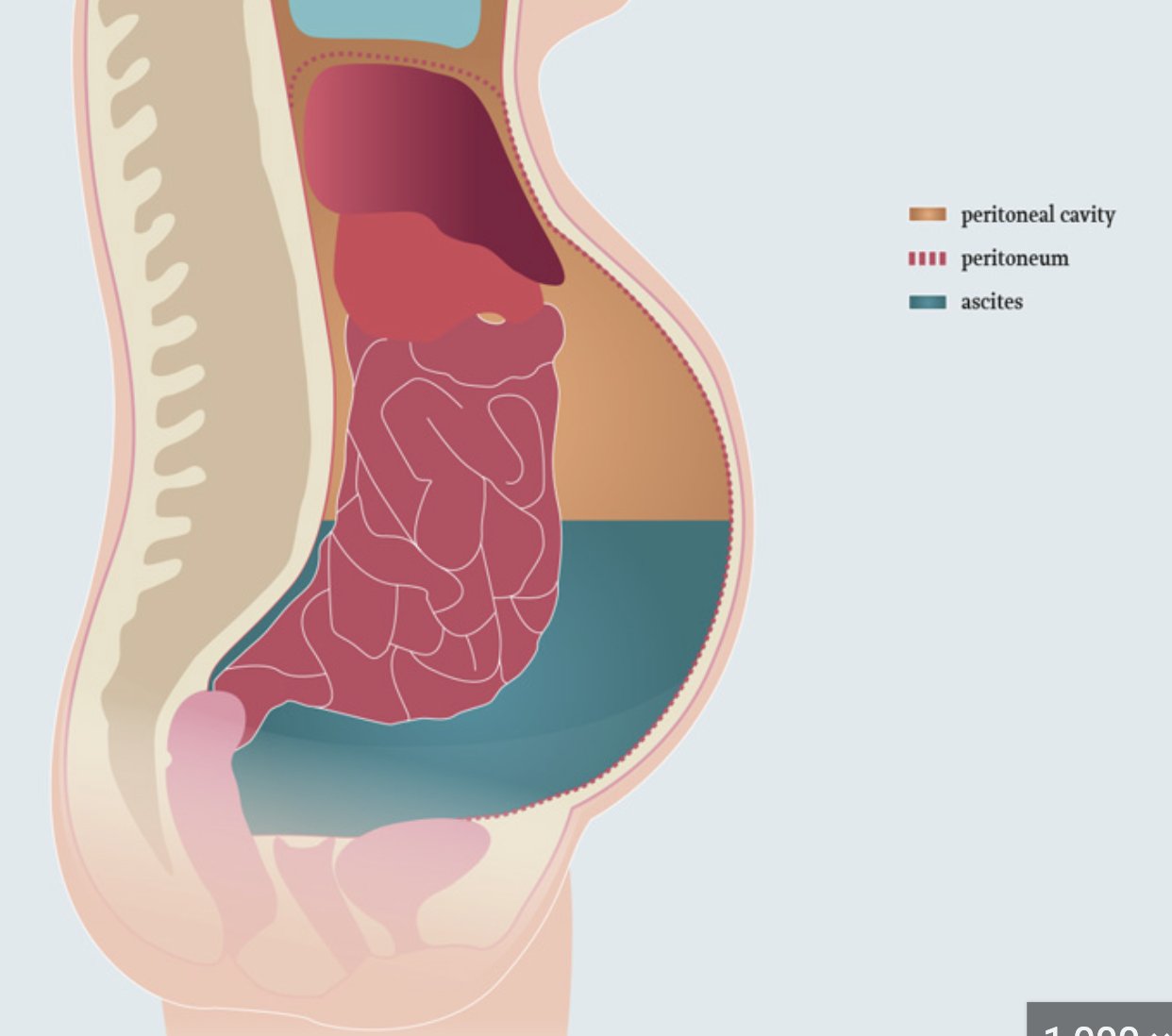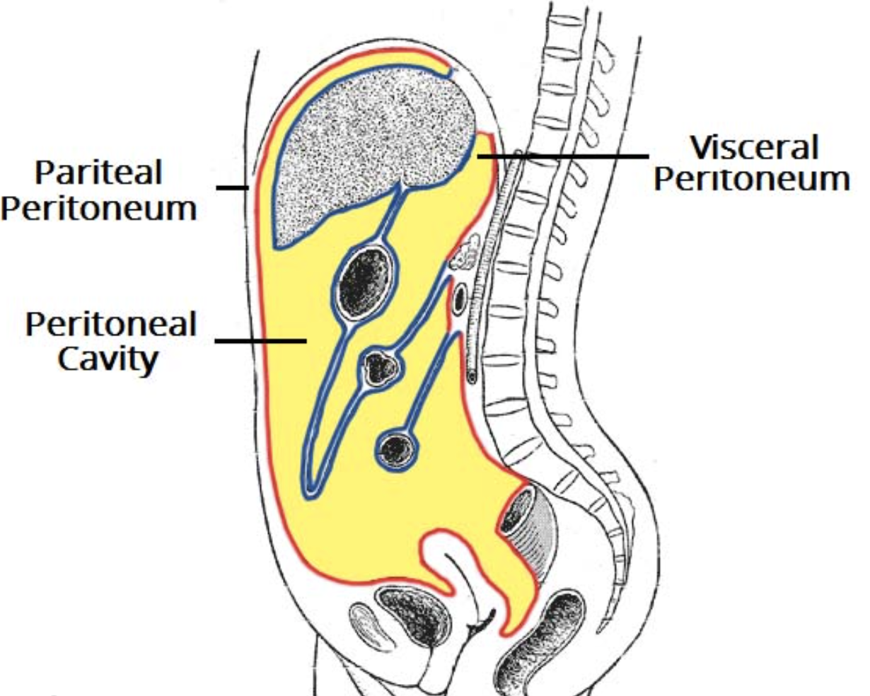 3 - fluid filled space in the abdomen