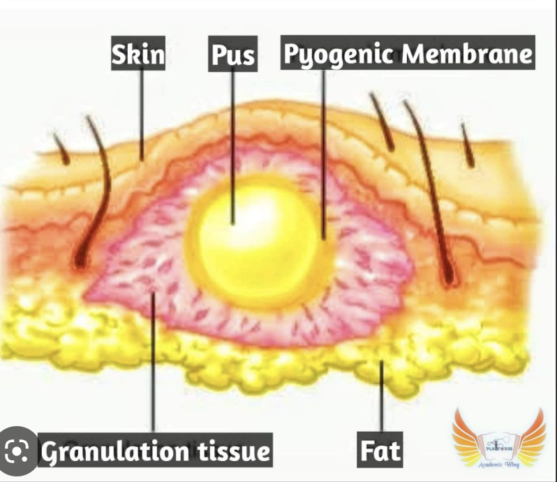 4 - pus filled collection lined by granulation tissue