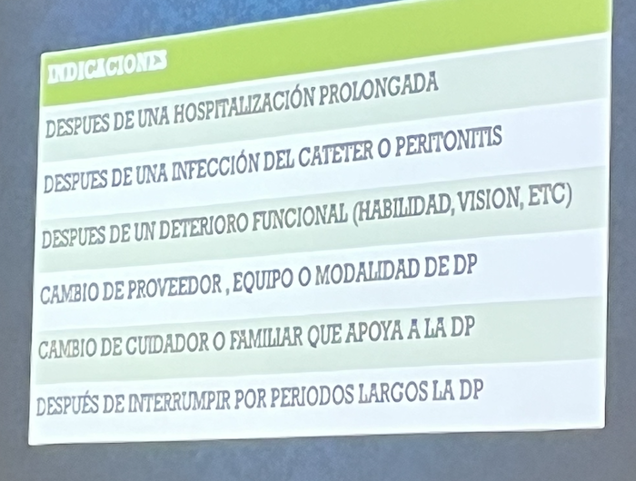 Indicaciones para volver a capacitar a pacientes con DP para evitar peritonitis