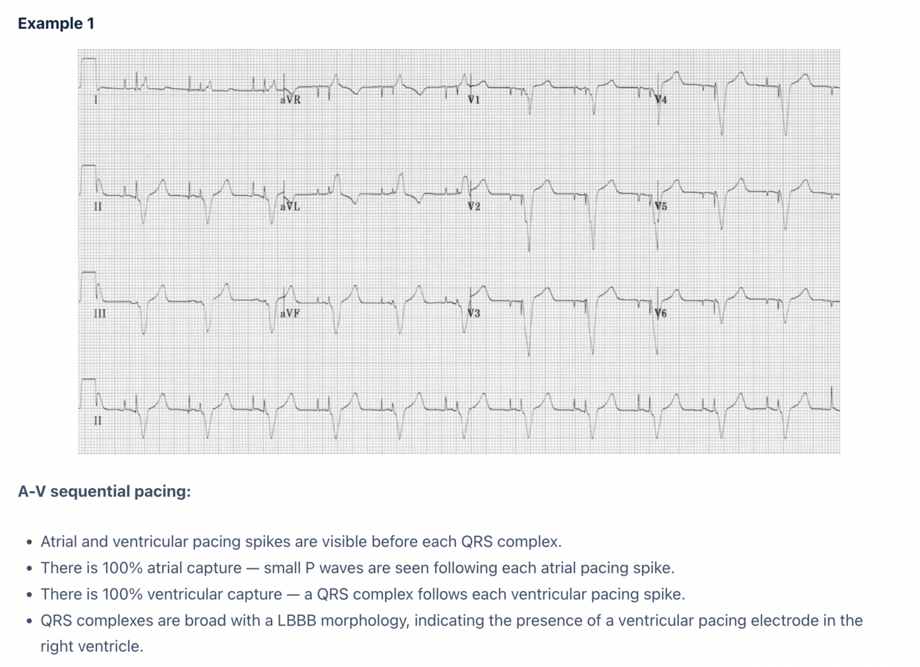Pacing spike precedes the QRS complex.