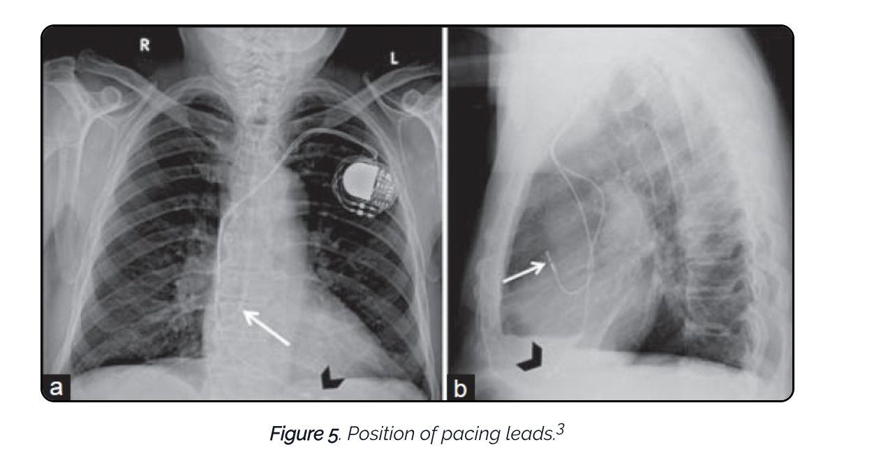 N.B. Right sided leads should be anteriorly located on lateral CXR