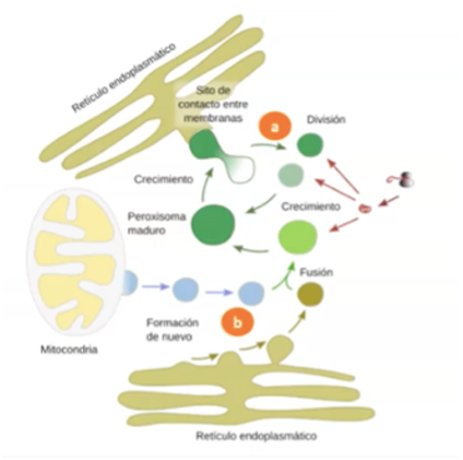 ¿Qué provoca que los peroxisomas maduren y crezcan?