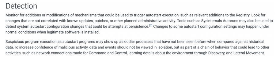 When considering Mitigation, MITRE states that this can be very hard to detect as legitimate programs will be assigned to be executed when the system is starting up.