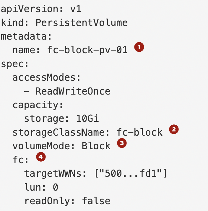 Block storage PV CR
