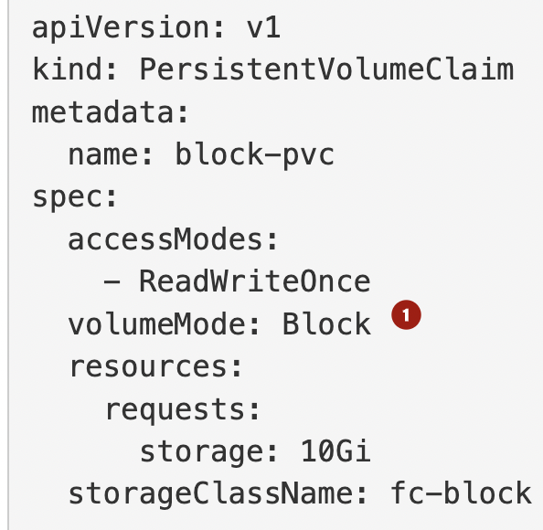 Block storage PVC CR