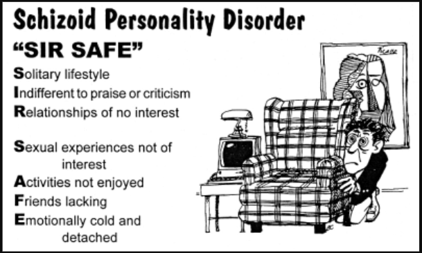 Which personality disorder is characterized by a lack interest in social relationships, seeing no point in sharing time with others, little pleasure in activities, and appear indifferent to the praise or criticism of others?