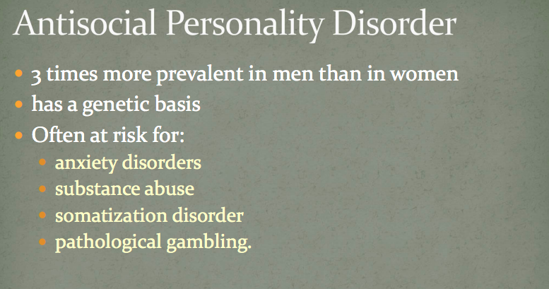 Pt’s with antisocial personality disorder are at risk for what 4 co-morbid conditions?