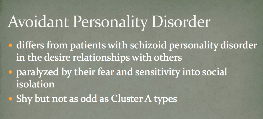 How does Avoidant personality disorder (cluster C) differ from Schizoid (cluster A)?