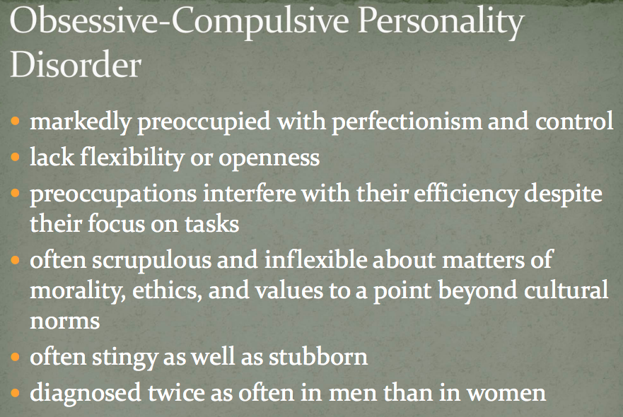 Which personality disorder is characterizd by being preoccupied w/ perfectionism and control, lack of flexibility or openness, often stingy as well as stubborn?