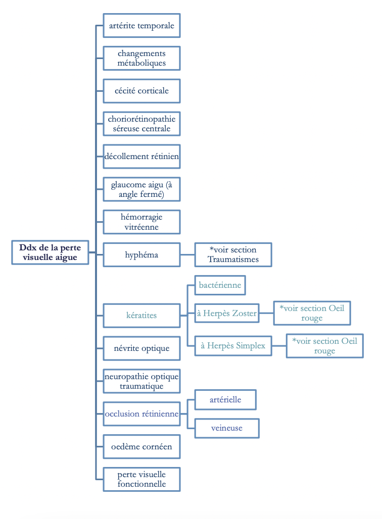 Perte visuelle aiguë: histoire de la maladie - DDX selon l’âge
