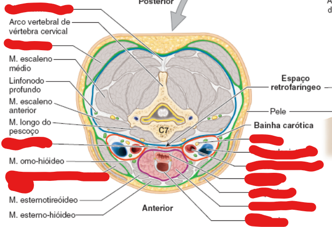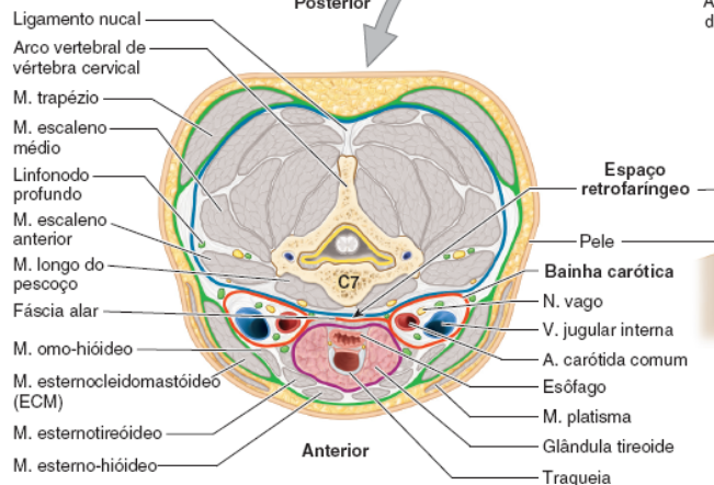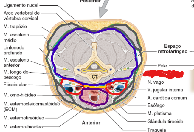 As lâminas da fáscia cervical foram destacadas. Identifique-as