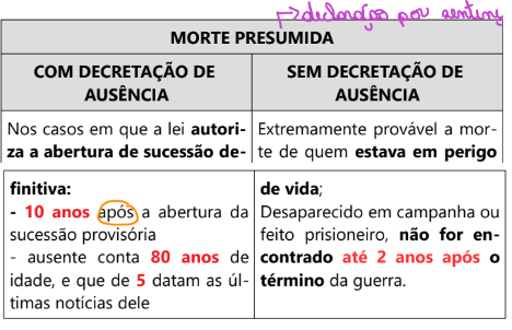 Art. 38. Pode-se requerer a sucessão definitiva, também, provando-se que o ausente conta oitenta anos de idade, e que de cinco datam as últimas notícias dele. –> É dispensável a abertura da sucessão provisória quando presentes os requisitos da sucessão definitiva previstos no art. 38 do CC. (STJ. 3ª Turma. REsp 1924451-SP, Rel. Min. Nancy Andrighi, julgado em 19/10/2021 (Info 716).