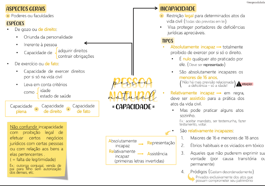 - Todas as pessoas têm a capacidade de direito, o que pressupõe a capacidade de fato, em regra, pois a incapacidade é a exceção.