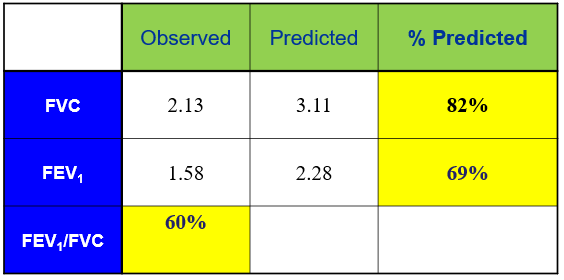 FEV1: Greater than 80% predicted voume (80-120% Range)