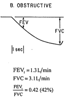 it is desireable to perform spirometry on all pts w/ unexplained dyspnea ad in those whom COPD is suspected. A (increase or decrease) in FEV1/FVC is characteristic of obstruction dz