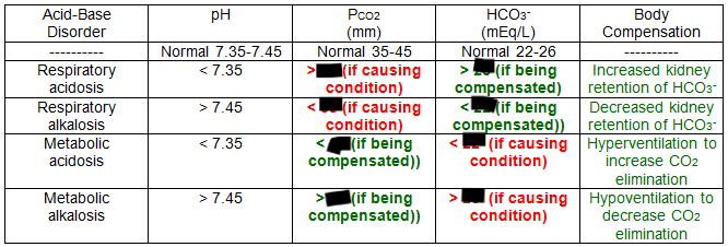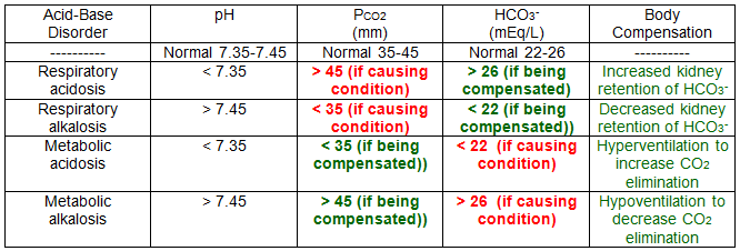 Disorders are classified as metabolic or respiratory depending on whether the cause is higher or lower CO2 pressure in the blood (_____________) or other cellular process in the body (______________).