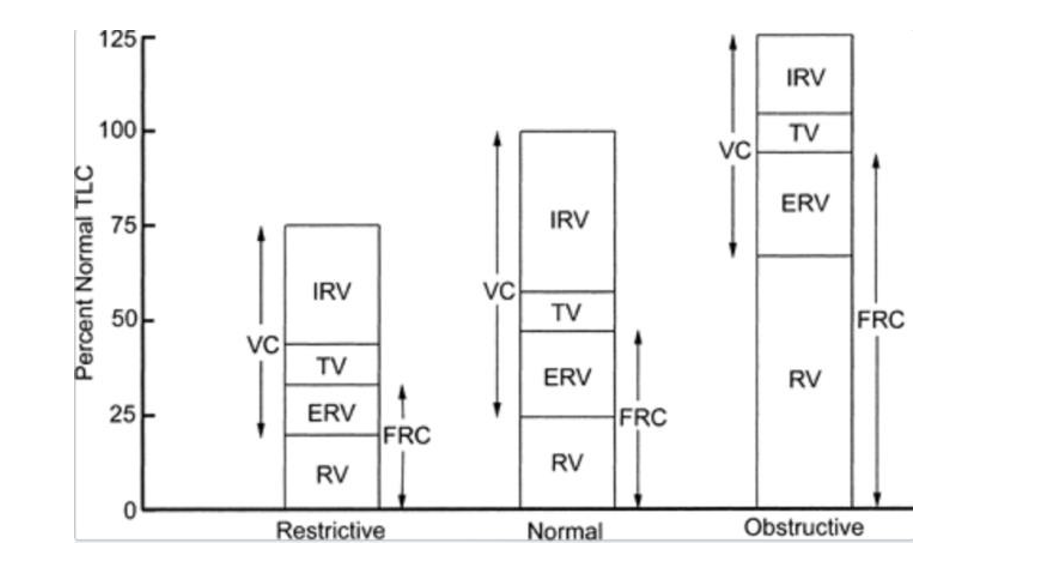 What is the difference between Obstructive and Restrictive/obesity lung volumes