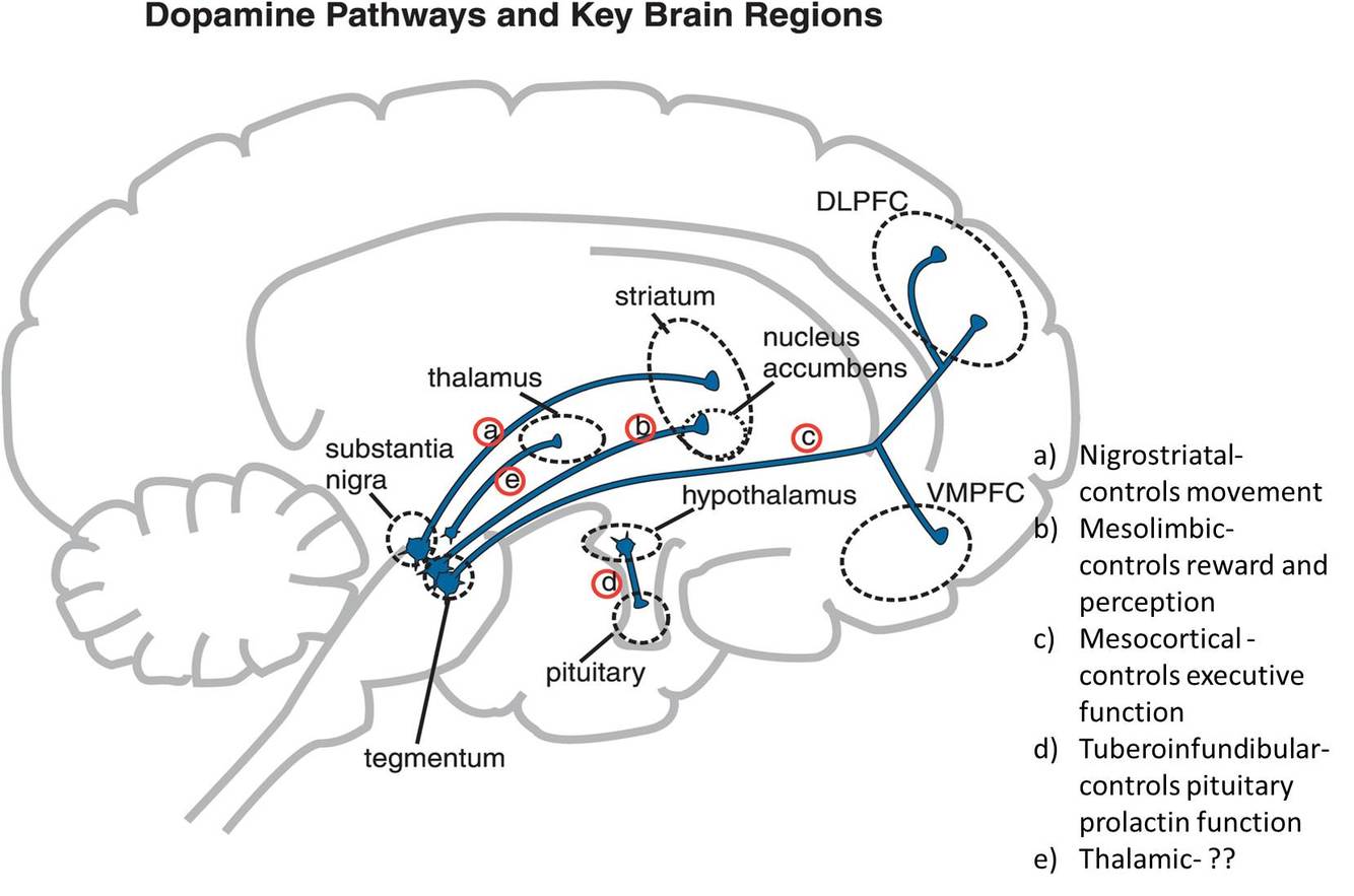 Which pathway is associated with the mesolimbic dopamine pathway?