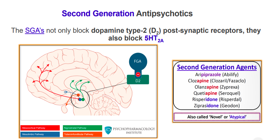 What is the MOA of the second-gen antipsychotic agents?