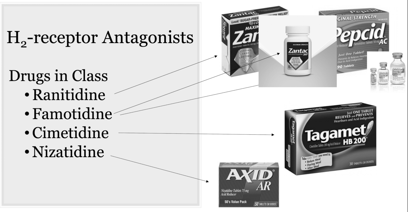 Famotidine (> ramitidine = nizaditine > cimetidine)