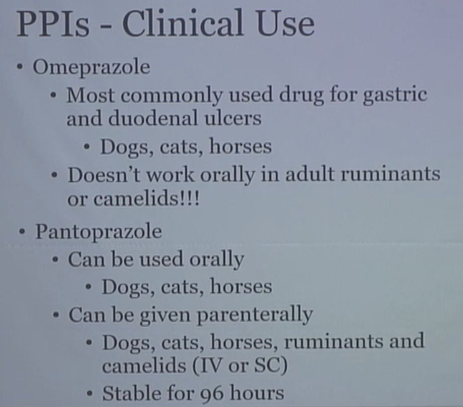 - Use for NSAID-induced ulcers, and equine glandular ulcers
