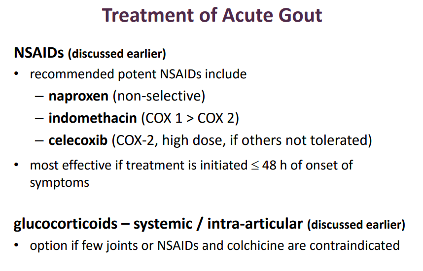 What are the 3 recommended potent NSAIDs for treating acute gout and the selectivity of each?