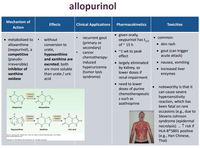 Stevens-Johnson Syndrome (epidermal necrolysis) –> ↑ risk if HLA-B*5801