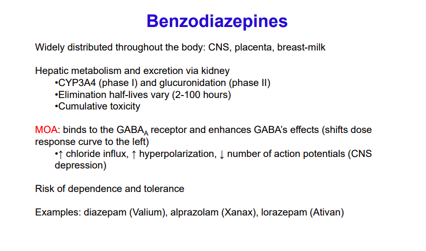 How do benzodiazepines distribute through the body and how are they metabolized?