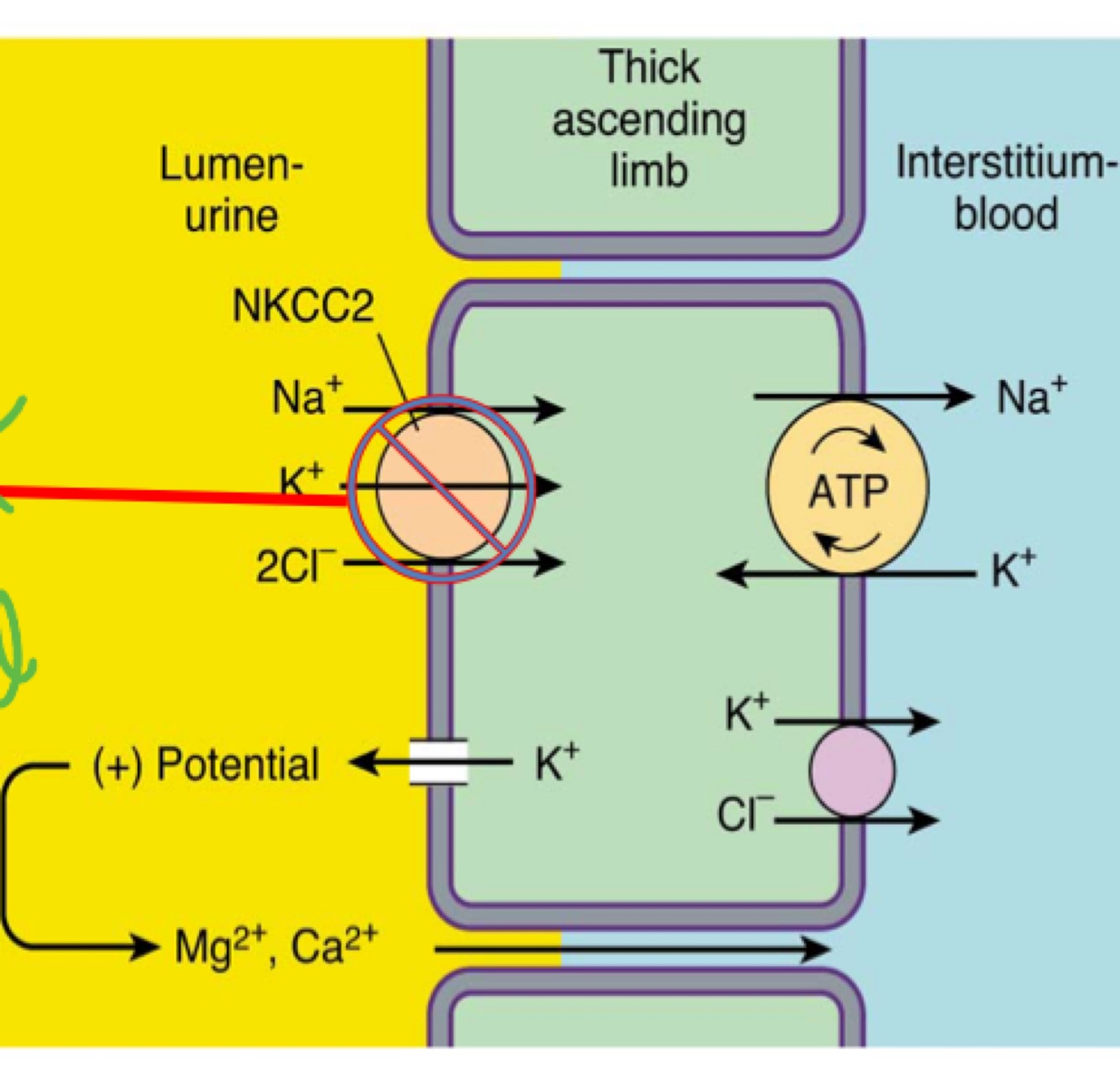 NKCC2 pumps Na+, K+ and 2 Cl- INTO the Thick Ascending Limb