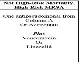 Mention two alternative antibacterial therapies that can be used for the treatment of hospital-acquired pneumonia in the presence of risk for MRSA and for high mortality risk. (No doses required)